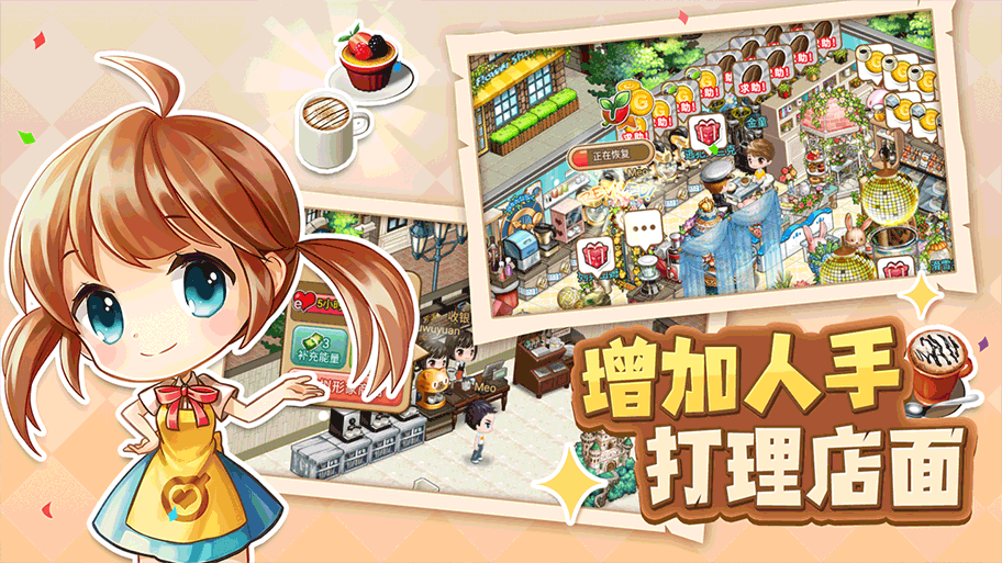 (2)本游戏模拟建造咖啡店经营故事背景。游戏玩法基于手机操作,在这里玩家可以设计心仪的店铺风格,招募店员,售卖丰富商品。还可以与好友之间互动做客等。